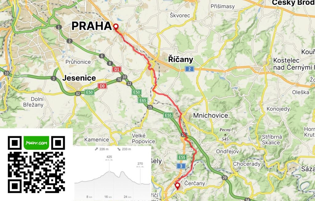- Říčany – v polovině trasy nabízejí kavárny, restaurace i obchody. Perfektní místo na doplnění energie.