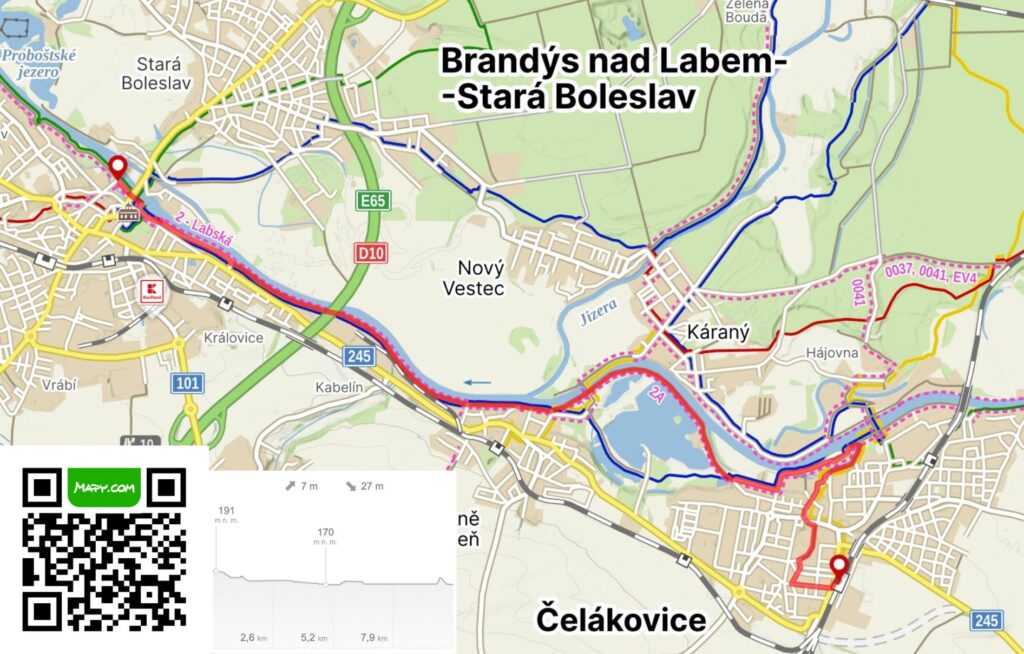 | 🗺️ Trasa | Čelákovice – Lázně Toušeň – Brandýs nad Labem |